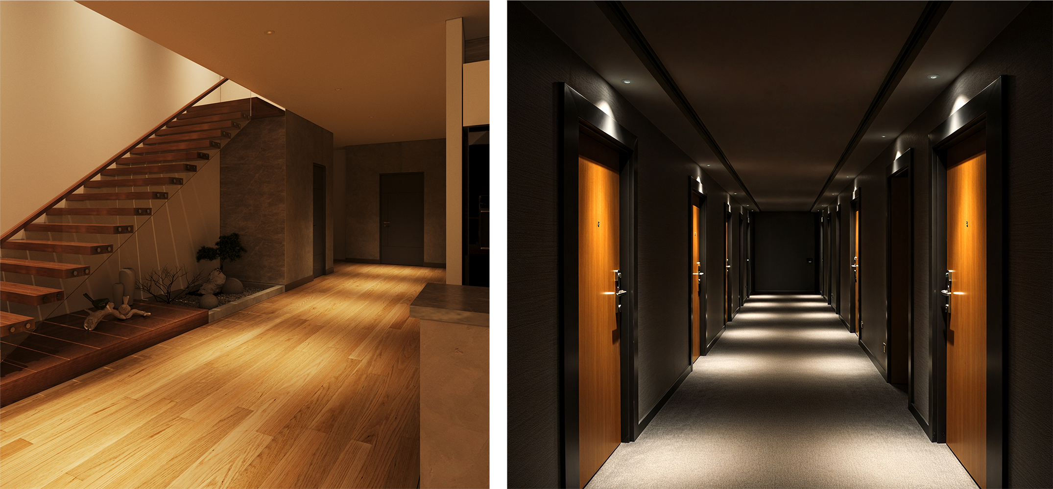 In hotel design, lighting shapes both function and mood. Guest rooms use layered illumination to balance relaxation with practicality, while corridors and spa entrances rely on warm, guiding light to create a sense of elegance and calm. Together, they elevate the guest experience, blending comfort with hospitality.