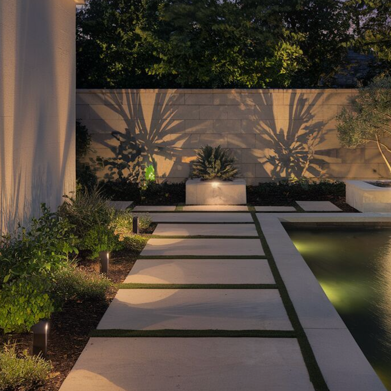 Energy-efficient, waterproof outdoor lighting designed to highlight architectural features and enhance natural elements.