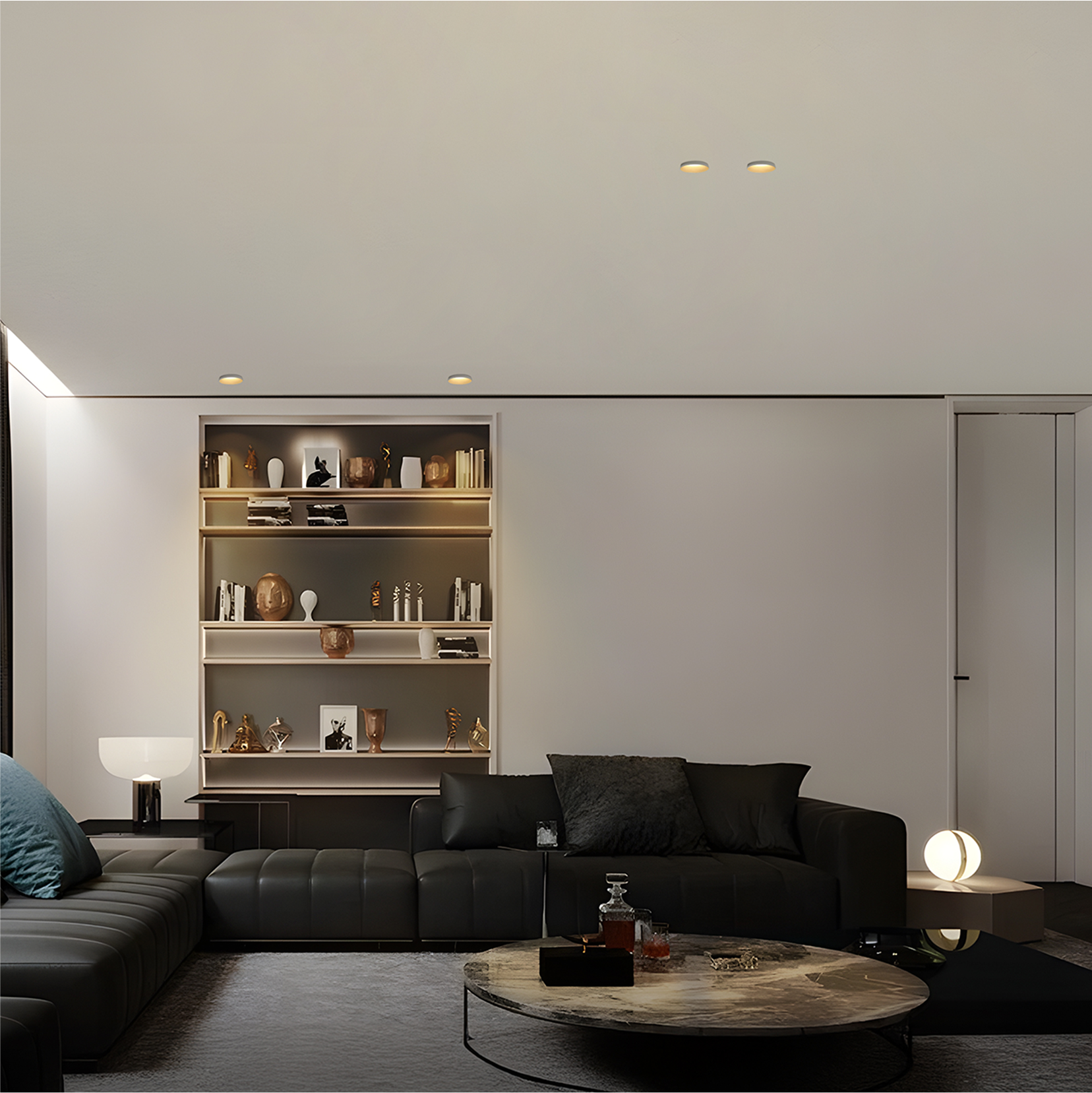 Less is more — this effect is defined by clean simplicity enriched with subtle elegance. It speaks to people who appreciate clarity, order, and understated sophistication, those who want their home to feel both minimal and refined. Born from Minimalism’s mid-20th-century philosophy, the result is a space that feels open, calm, and uncluttered, yet quietly luxurious. Neutral tones and clean lines form the foundation, while details in brass, glass, or marble add depth and richness. Here, lighting is not just about brightness but about shaping atmosphere, turning simplicity into warmth and invitation.