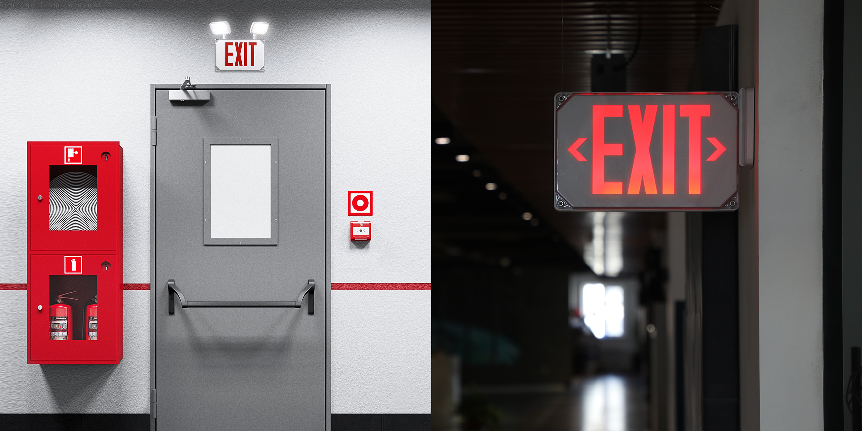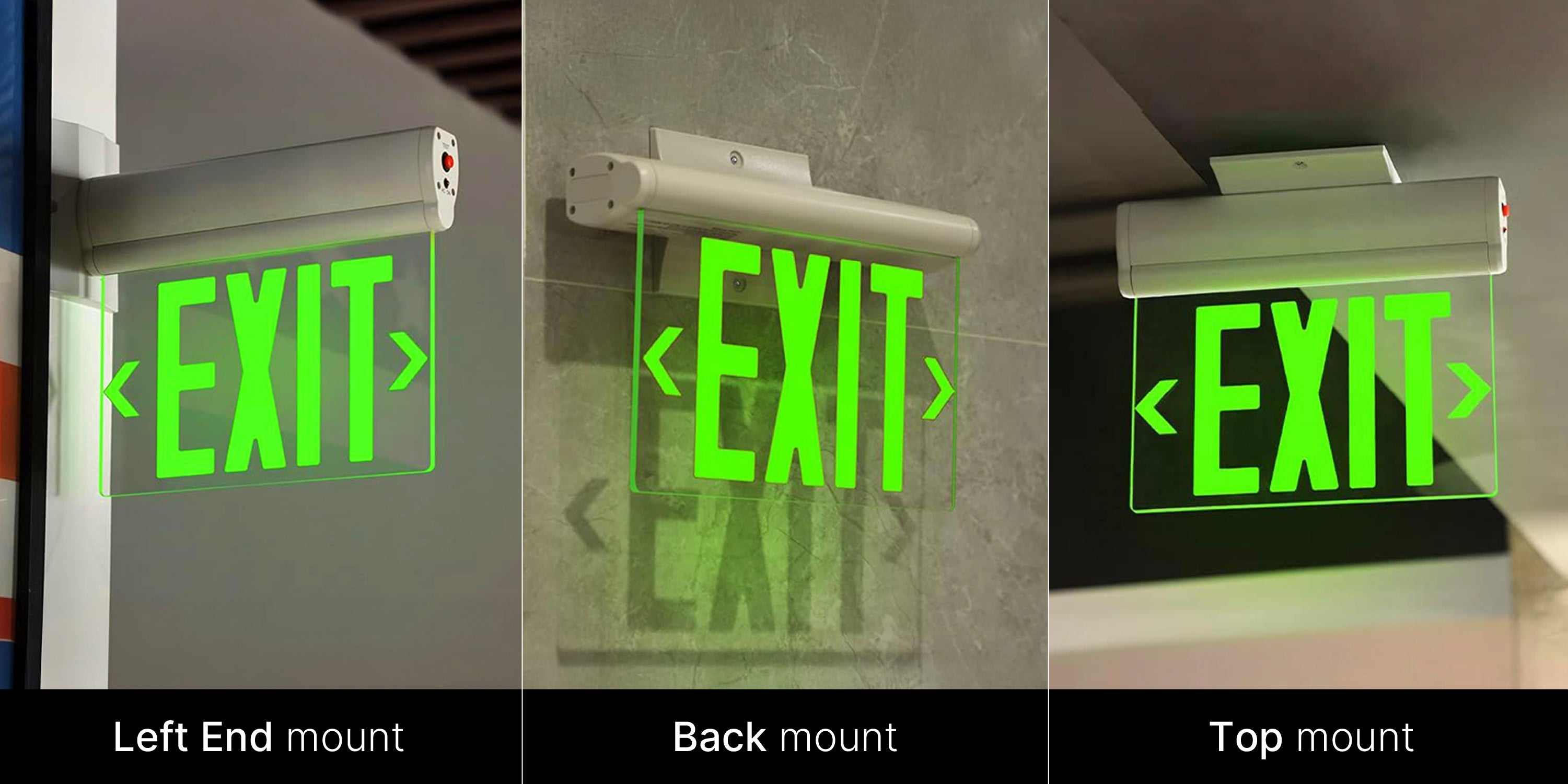 The Acrylic Exit Sign features a clear, durable panel with bright LED lettering and a 180° adjustable design for flexible mounting.