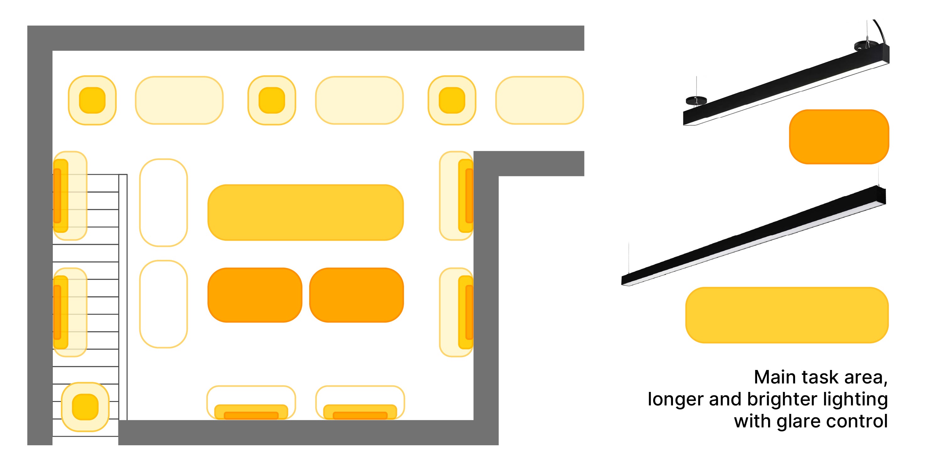 Longer and brighter — ideal for large open offices or high ceiling rooms that demand high-performance lighting with minimalist style.
