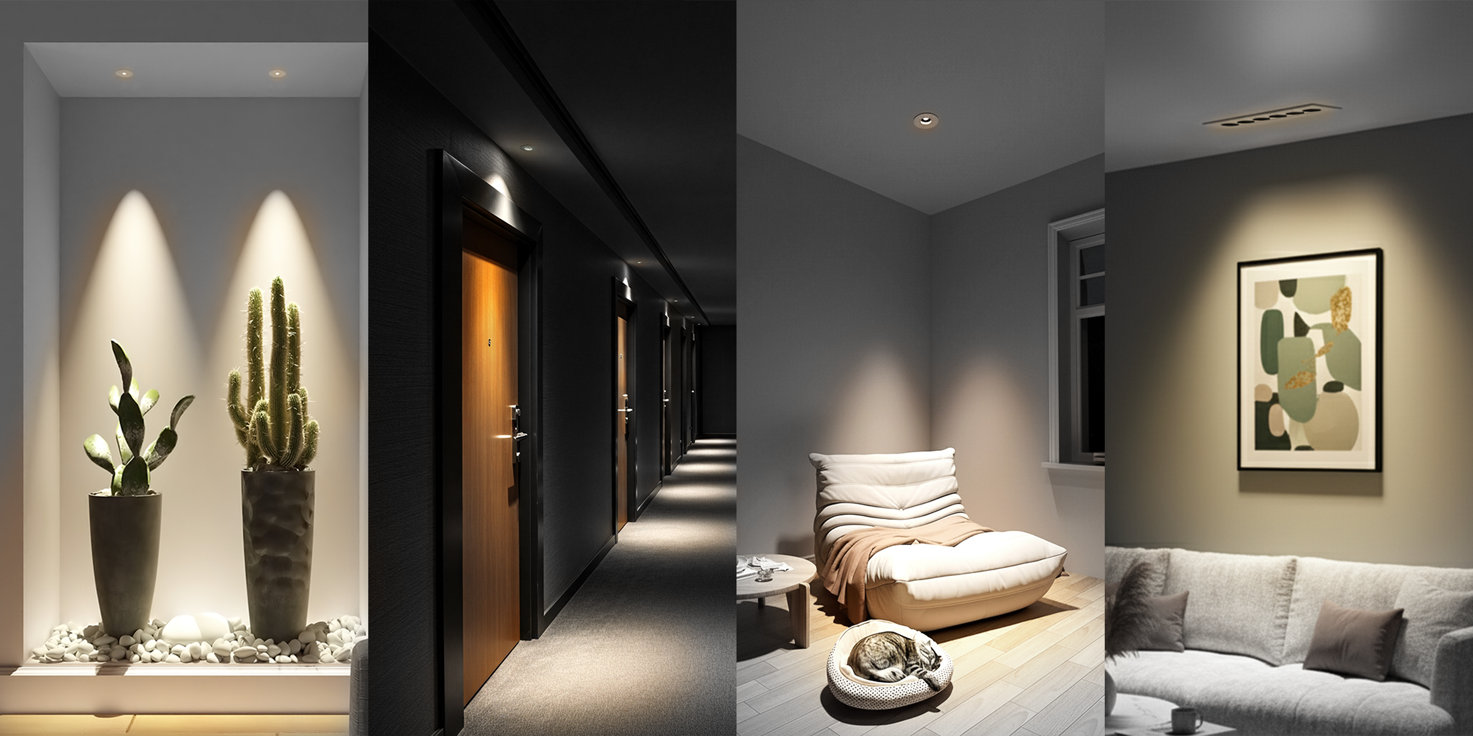 Designed to enhance local contrast and highlight architectural or decorative details, these fixtures bring depth and visual interest to a space while maintaining a clean presence within the overall design.