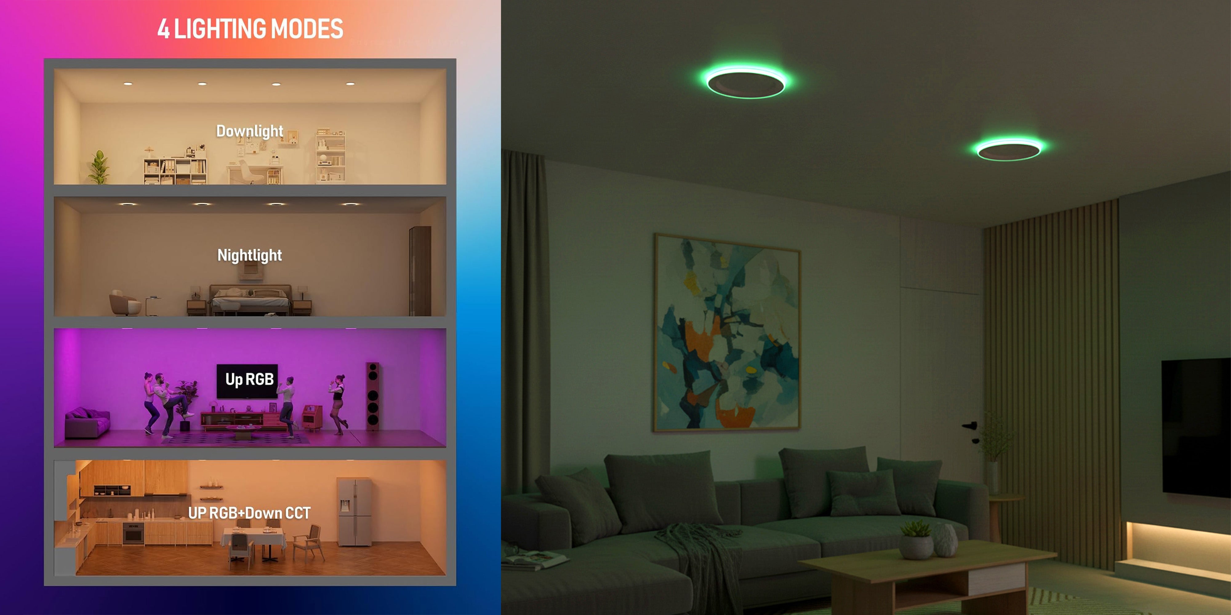 Provides RGB edge ring encircling a standard 5CCT center light, delivering both practical white illumination and customizable color effects.
